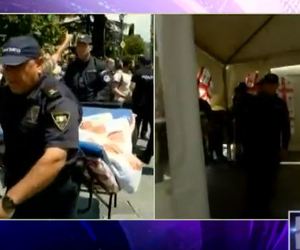 პოლიციას პარლამენტის წინ, გზის სავალ ნაწილზე განთავსებული კარვები ტროტუარზე გადააქვს