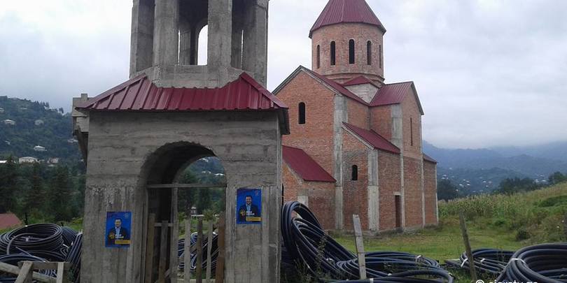 ქართული ოცნების საარჩევნო პლაკატები ეკლესიაზეც გააკრეს