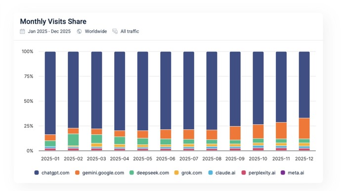 ეს ყველაფერი იმის ფონზე ხდება, რომ ChatGPT მომხმარებლებს კარგავს კონკურენტი სერვისების, განსაკუთრებით Google-ის Gemini-ს, სასარგებლოდ. მომხმარებელთა ტრაფიკის მხრივ ChatGPT კვლავ ლიდერობს, თუმცა, Similarweb-ის მონაცემებით, ბოლო თვეებში მისი ბაზრის წილი შემცირდა.