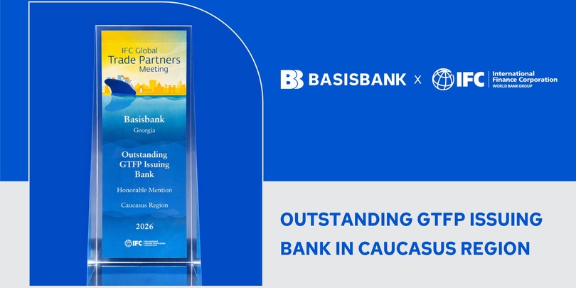 ბაზისბანკმა, IFC-ის მე-9 — გლობალური სავაჭრო პარტნიორების შეხვედრაზე, საპატიო ჯილდო მიიღო, როგორც კავკასიის რეგიონში GTFP-ის გამორჩეულმა ემიტენტმა ბანკმა.