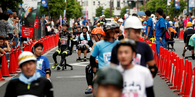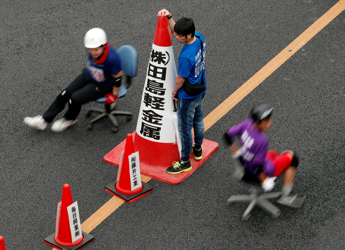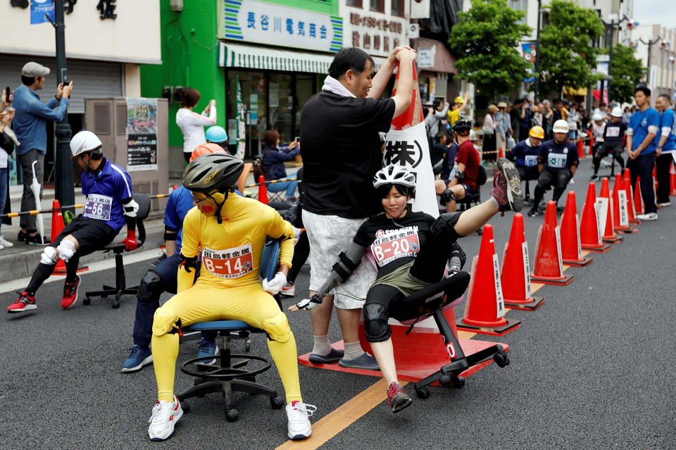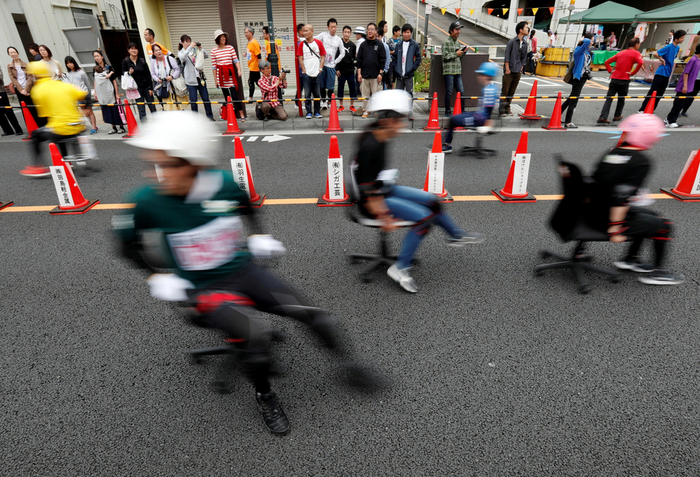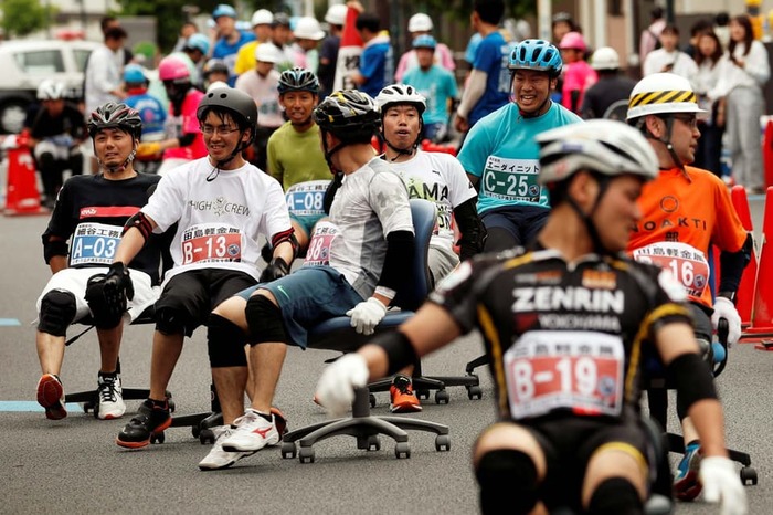 საოფისე სკამებით რბოლა — იაპონიის ქუჩებში სპორტული შეჯიბრება ჩატარდა