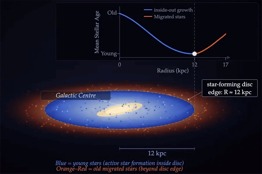 არსებობს ადგილი, სადაც ჩვენი გალაქტიკის დისკო თხელდება — იმდენადაც კი, რომ იქ უკვე ვარსკვლავები აღარ წარმოიქმნება. ზოგი ამას გალაქტიკის საზღვრების საუკეთესო განმარტებად მიიჩნევს. ასტრონომებმა ამ ადგილის საპოვნელად ვარსკვლავების ასაკი გამოიყენეს.