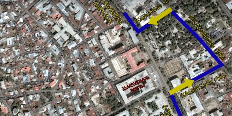 - შოთა რუსთაველის გამზირიდან თავისუფლების მოედნის მიმართულებით მოძრავი ავტომანქანები ისარგებლებენ ჭიჭინაძის ქუჩით (N1 საჯარო სკოლასთან), ძმები ზუბალაშვილების ქუჩის გავლით და 9 აპრილის ქუჩით დაბრუნდებიან რუსთაველის გამზირზე.