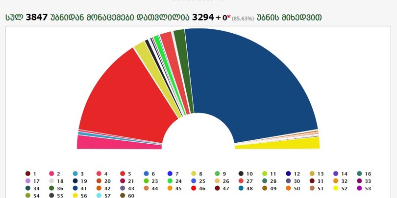 დათვლილია ხმების 85,63%: ქართული ოცნება — 48,29 %, ენმ — 26,61%, ევროპული საქართველო — 3,78%